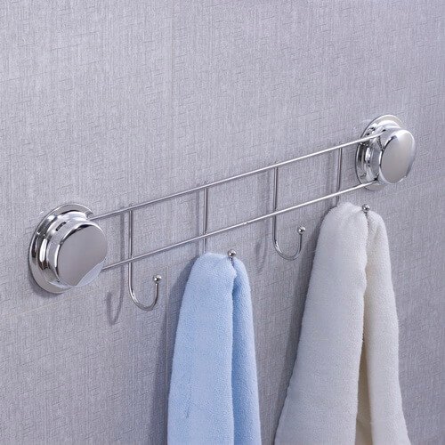Chrome suction hooks is designed with heavy duty suction cup and double hooks. It is different from traditional bathroom hook by screws , but mount on wall with suction or glue , offer non-damage solution for bathroom .