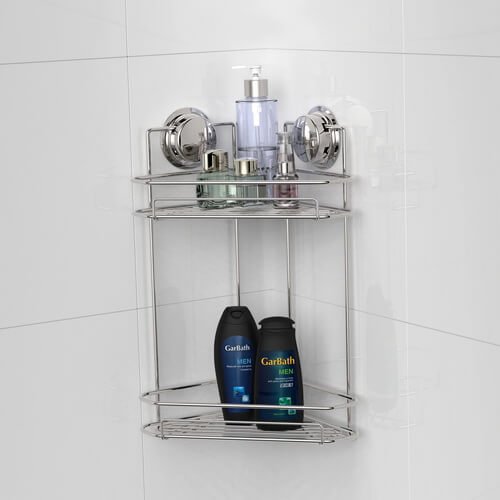 Corner shower shelf with suction cups is desinged well with 2 tier wire corner baskets .