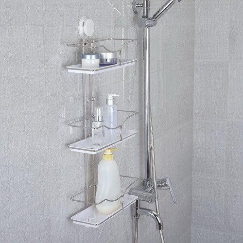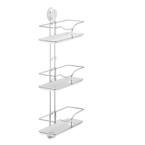 Bathroom suction shelf is designed with 3 tiers shelves for bathroom storage .