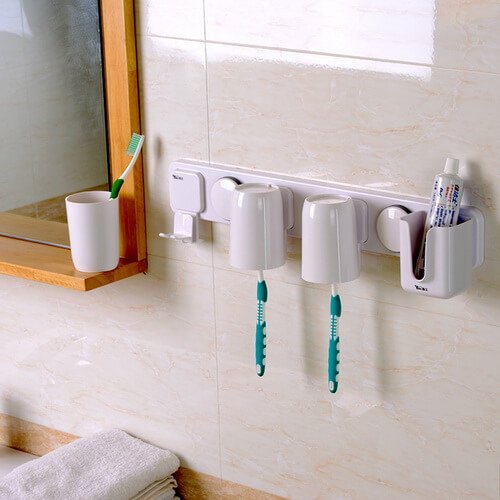 Suction toothbrush cup holder on wall by a rubber vacuum cups , with toothbrush cups for 2 person , just like the toothbrush holder wall suction 260048 .