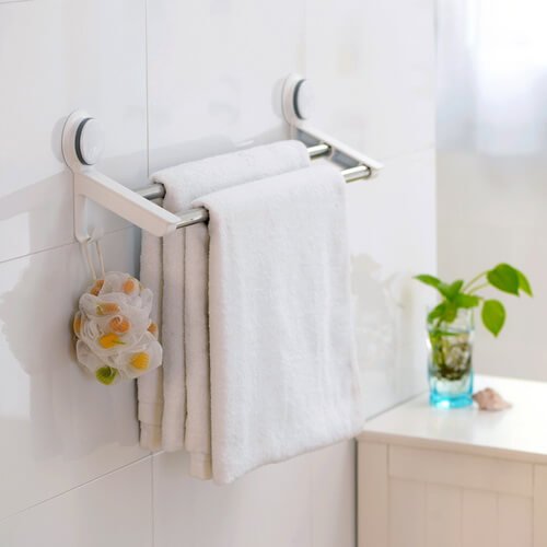 Suction cup towel rack is made of 2 towel bar for 2 pieces towels .