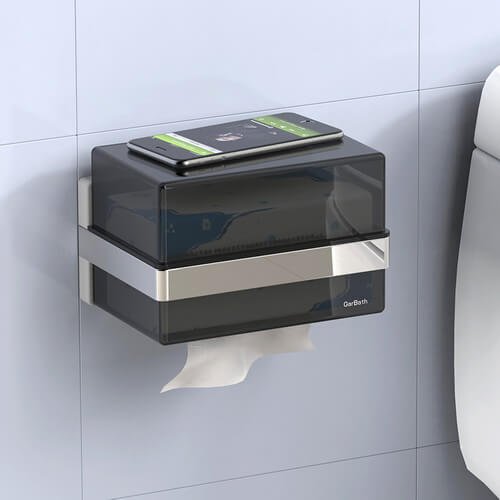 The whole design is elegant ,  just fix it on wall by suction or glue  easily . Also , there is a pace for sanity paper for women .