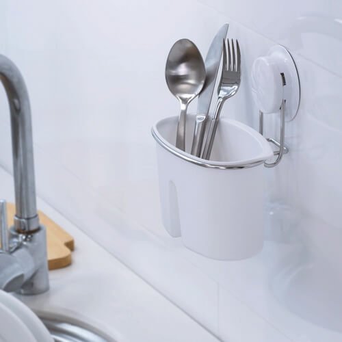 Suction cup shelf kitchen is designed for putting washing brush , washing sponge, washing cloth fabric of kitchen cleaning .