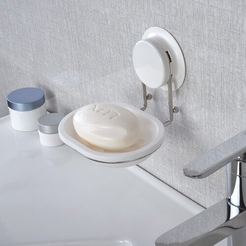 Suction Soap Holder 260001 was designed with a plastic draining soap dish , can be mounted with suction or glue for bathroom or toilet . You can easy to fix on the wall , put soap on it without mess.