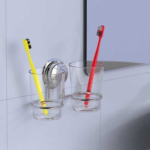 Suction toothbrush cup holder on wall by a rubber vacuum cups , with toothbrush cups for 2 person , just like the toothbrush holder wall suction 260048 .