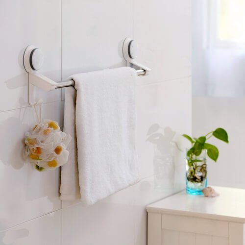 Suction towel bar for bathroom is simple for hanging one piece big shower towel or several small towel .