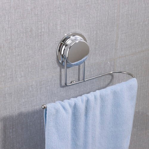 Suction cup towel holder is simple but useful , with the stainless steel rack to hang towel on wall firmly .