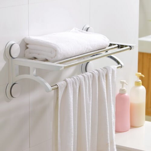 Suction towel shelf for bathrooms is simple for hanging one piece big shower towel or several small towel .